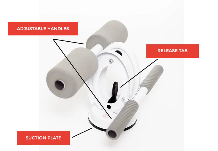 D’une main, appuyez la ventouse sur une surface plate. De l’autre, poussez le levier de verrouillage pour que la barre d’exercices adhère fermement et reste stable. Et voilà !